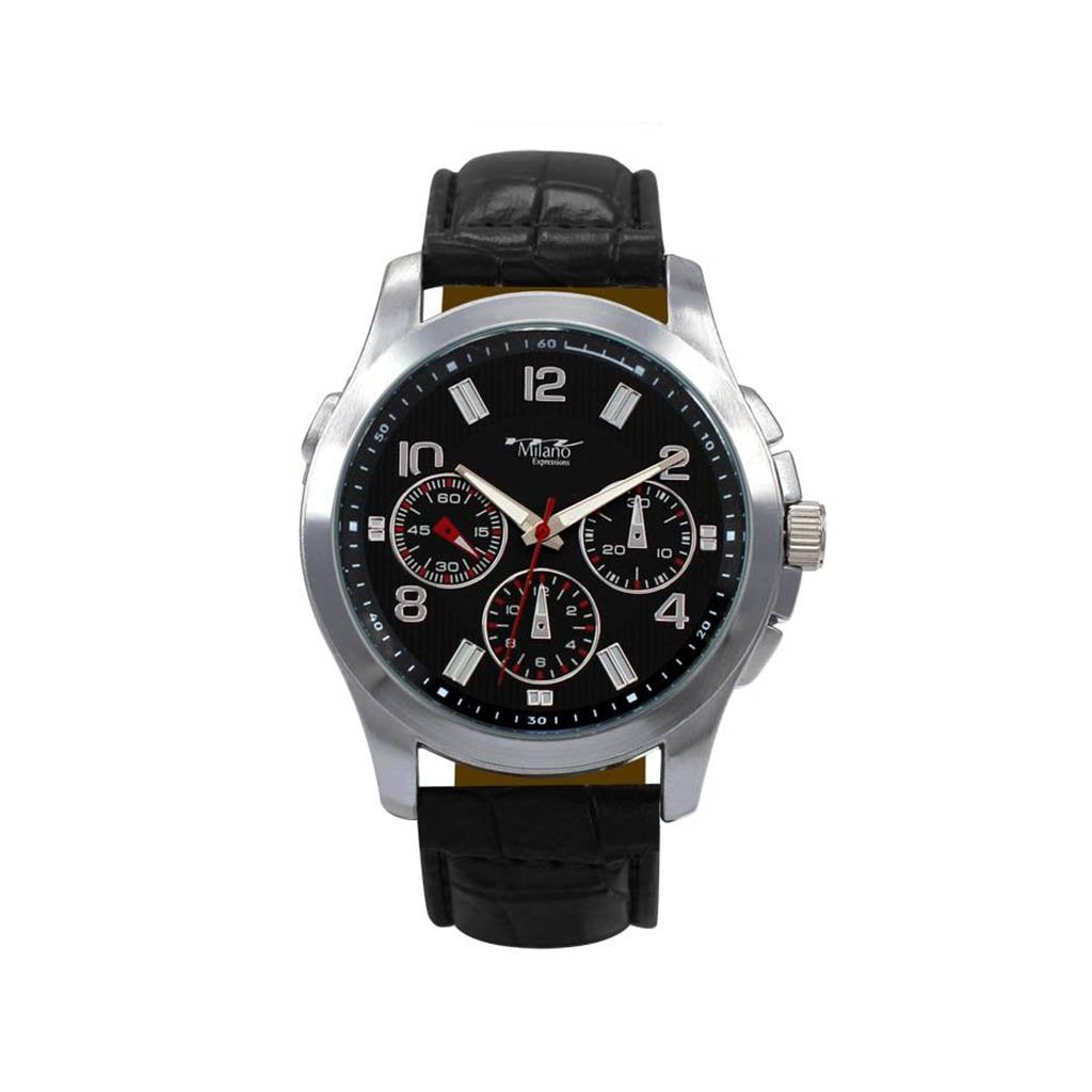 M Milano Expressions Black Vegan Crocodile Band Watch with Silver Case and Black/Silver Dial