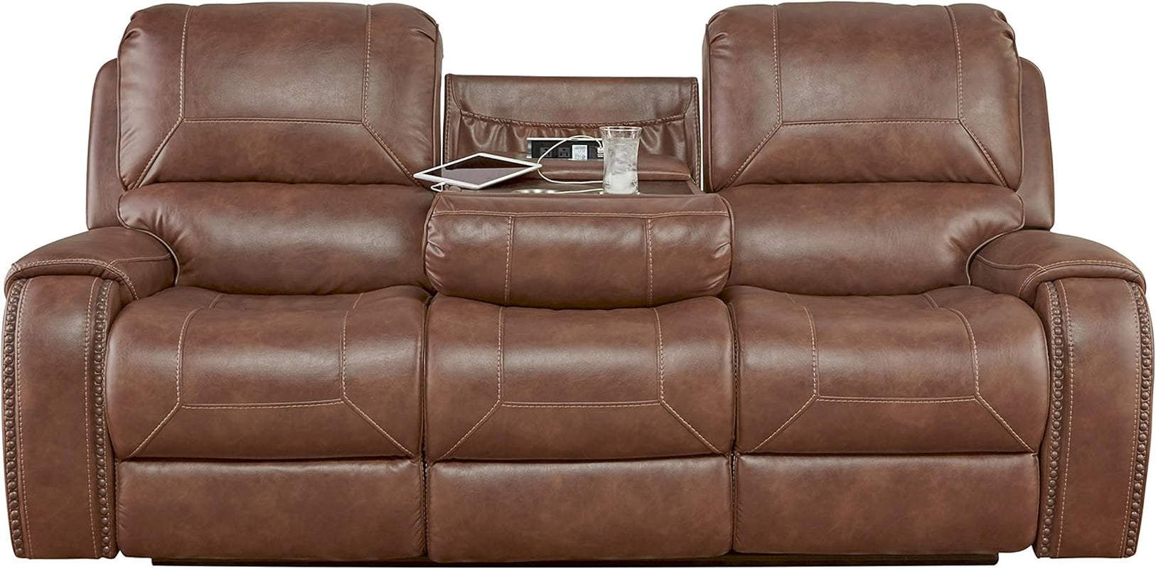 Brown Faux Leather Reclining Sofa with Cup Holders