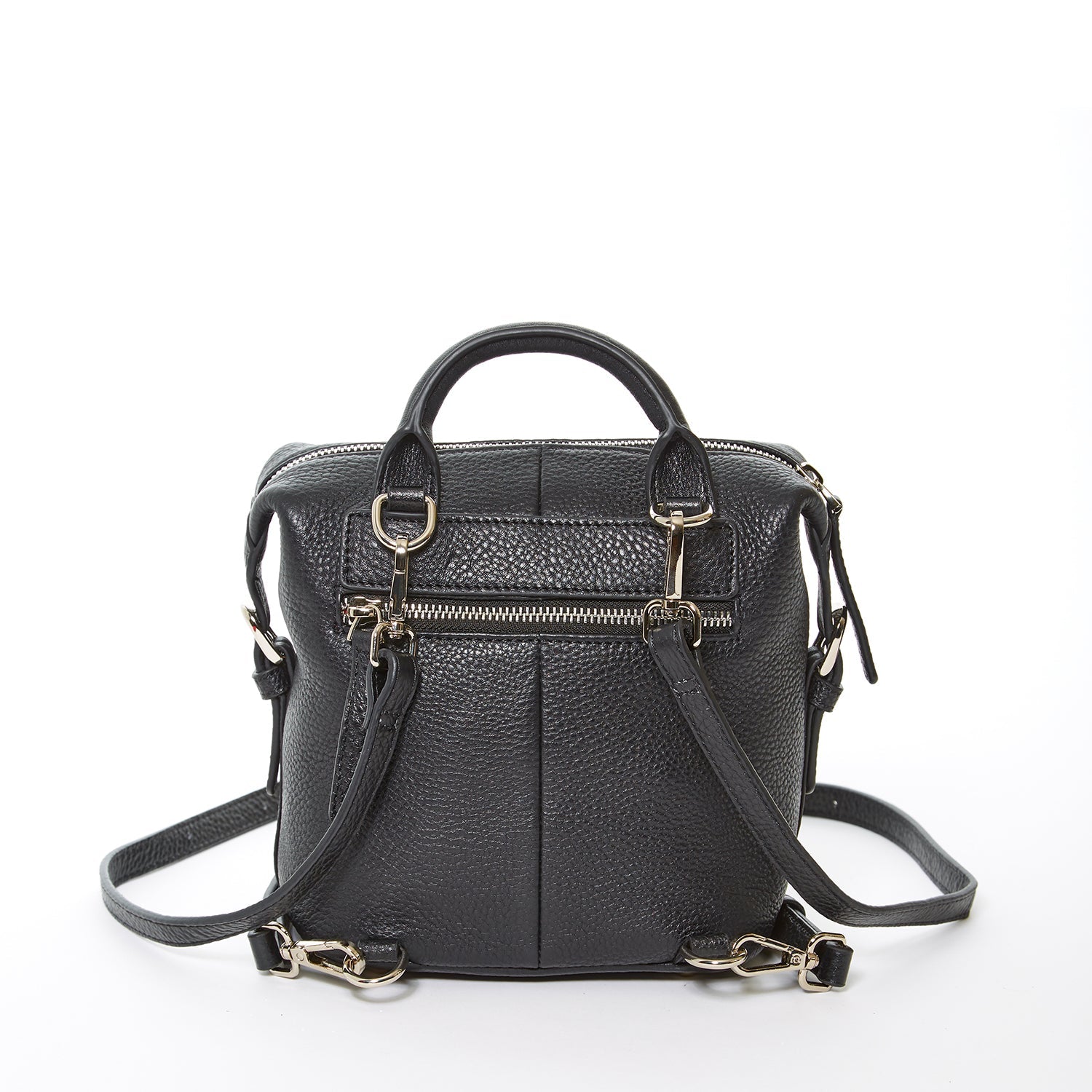 The Ashley small black leather backpack is a fresh new take on the original Ashley. This stylish versatile leather convertible backpack purse is a fun, practical alternative to your traditional fashion handbag. With ease, you can convert it from a backpack to a crossbody making this your new go-to bag. Made with genuine pebble leather, silver zippers, and leather tassels. This chic bag includes a zipped front pocket, back pocket, middle compartment, and a cell phone slot. This fashion backpack is equally as perfect to wear to work or on a fun weekend excursion.