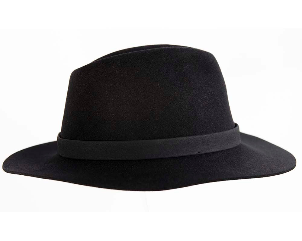 Black rabbit fur wide brim fedora hat with leather band