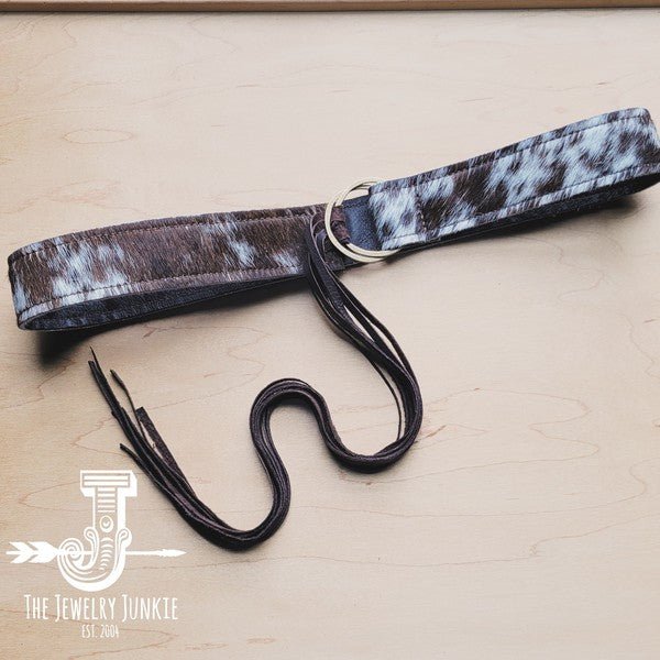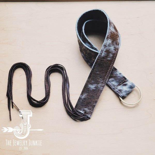 Brown&White Hide Leather Belt w/ Leather Fringe