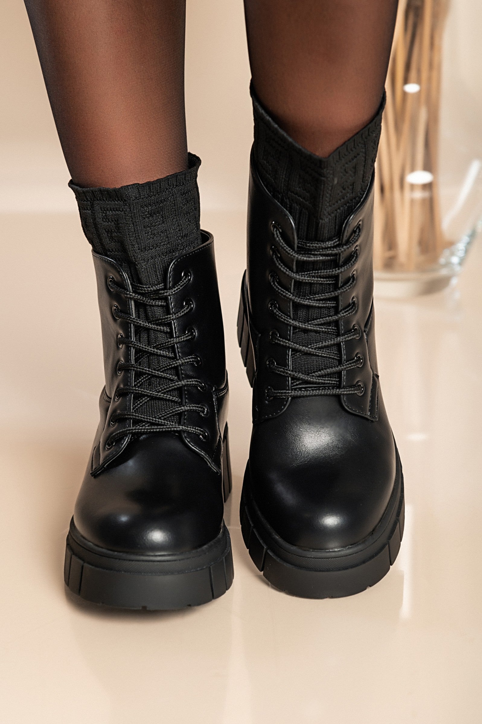 These stylish ankle boots are made from a combination of high-quality synthetic leather and textile, ensuring perfect comfort when walking. With round toe and laces. Available up to size 41.