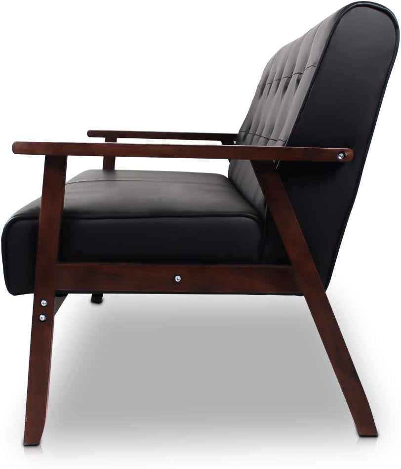 Mid-Century Modern Solid Loveseat Sofa Upholstered Faux Leather Couch