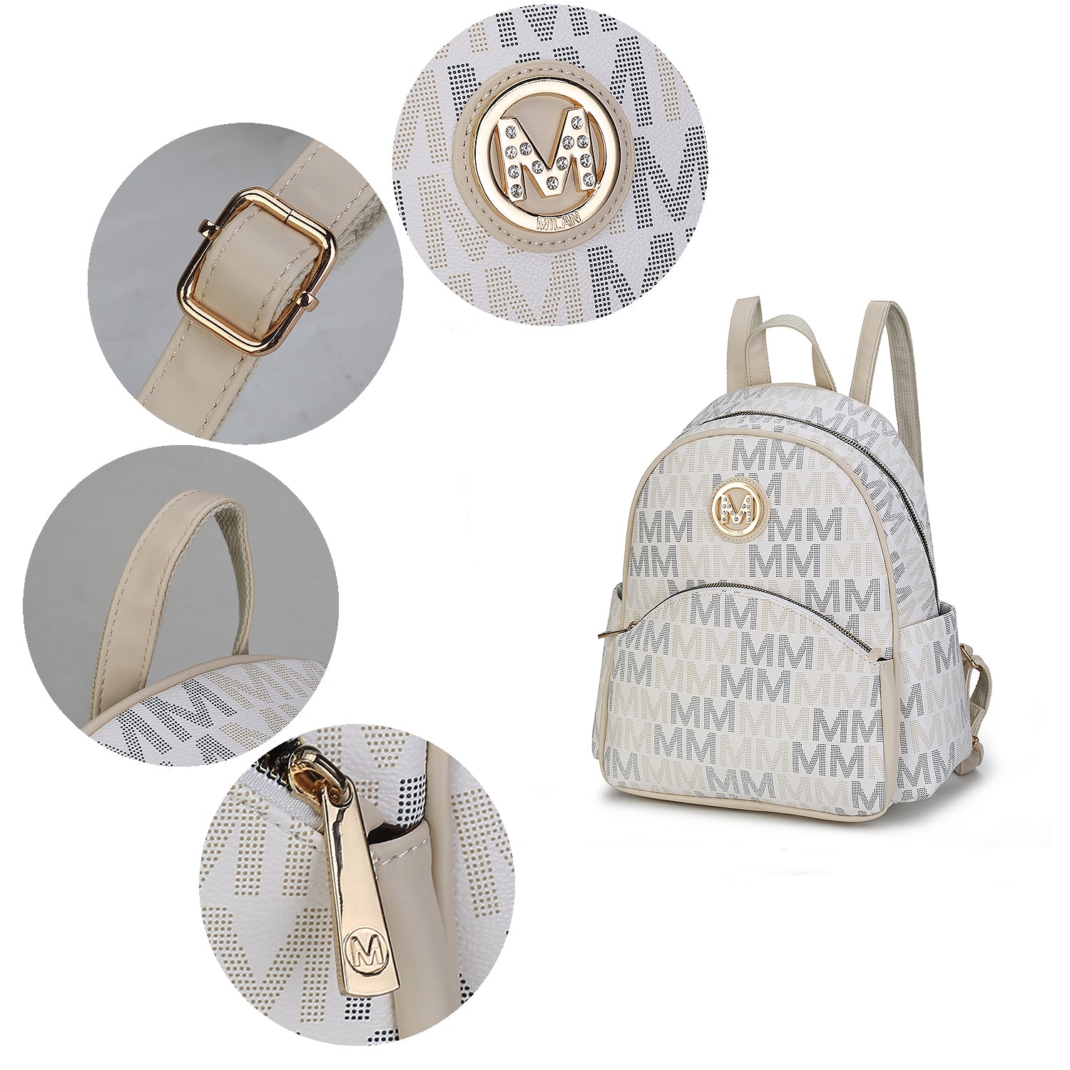 This is the sophisticated softly structured Backpack you have been looking for. Our Palmer Backpack is crafted from our Signature logo-print canvas in vegan pebbled leather and designed with gold-tone hardware. This style holds your essentials while maintaining its classic shape. Open to top zipper closure to reveal a fully lined interior with two slip pockets and plenty of storage. The exterior features a slip pocket on each side, perfect to keep all your small items easy to reach. It has also a front zippered pocket. This style has a flat base and feet for stability. The straps adjust to your perfect fit. The Palmer Backpack easily fits all your things and is versatile enough to carry to the office or on weekends.