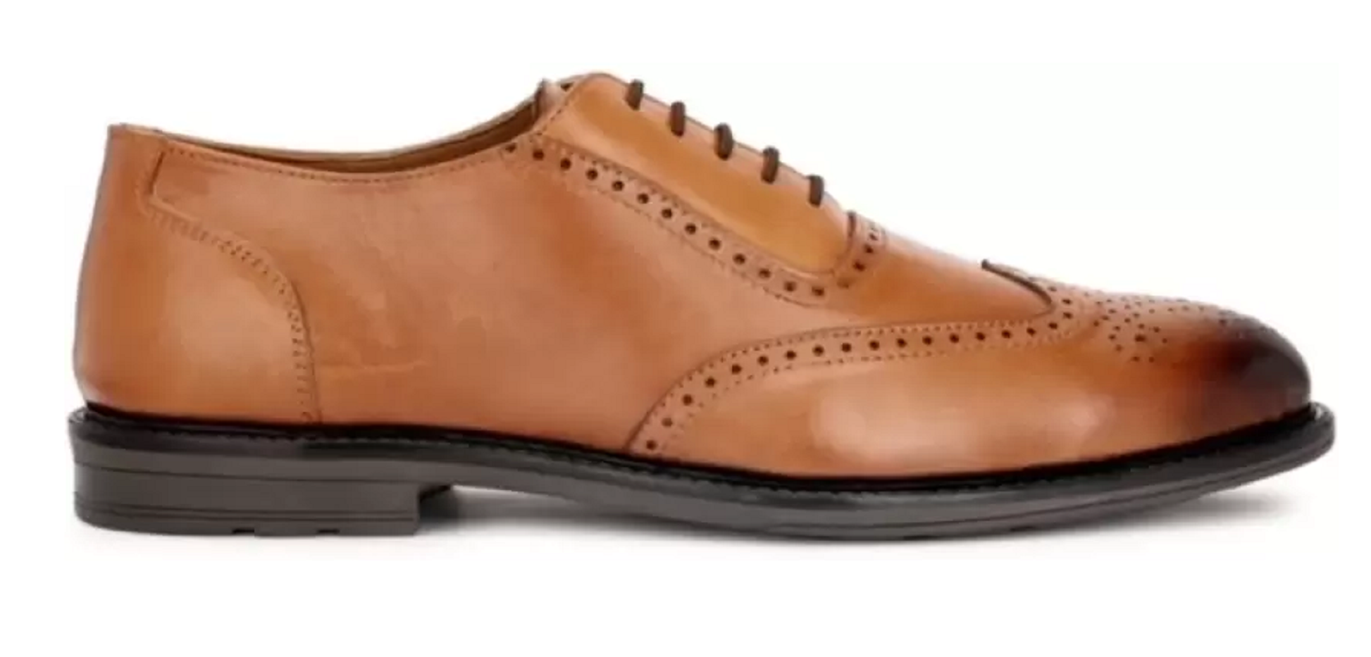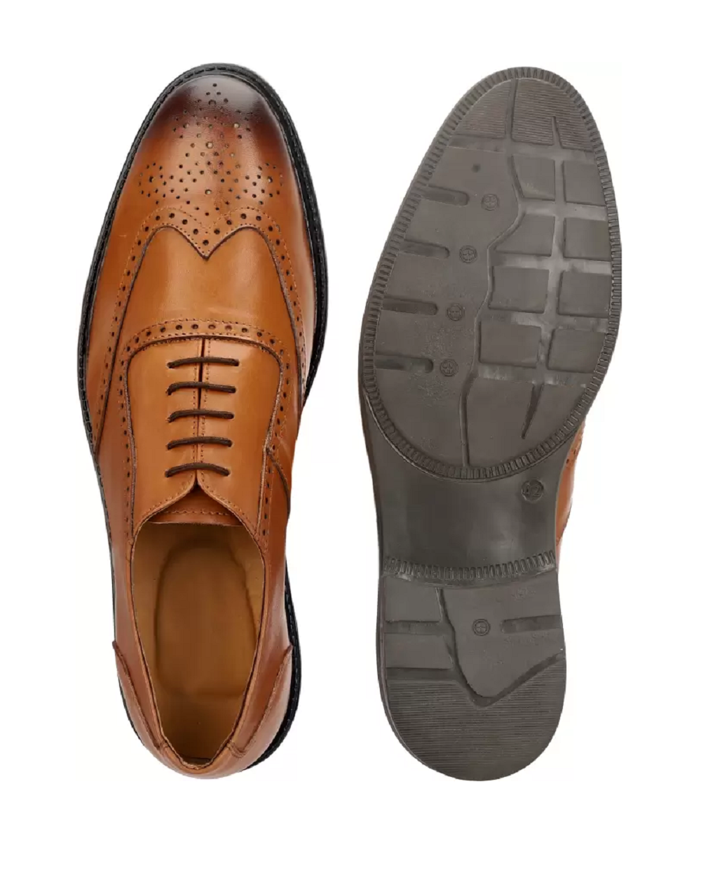 Pure Leather Brogues Shoes For Men(Color- Tan)(UK Size- 7)