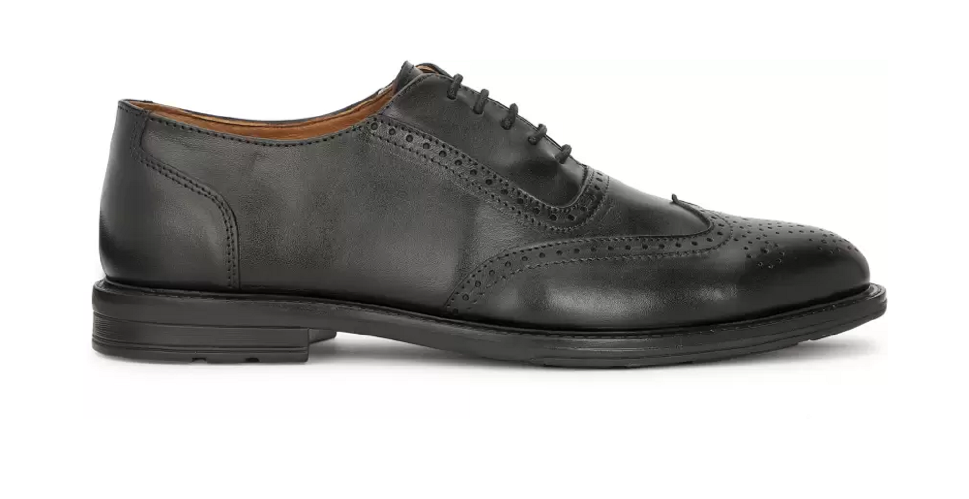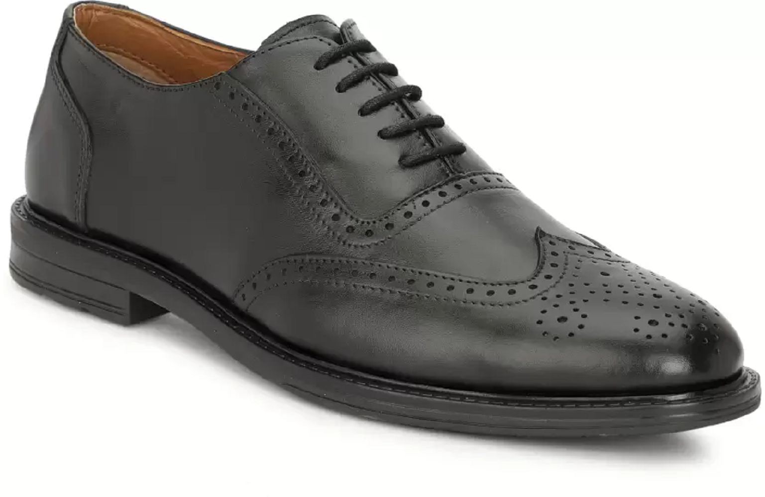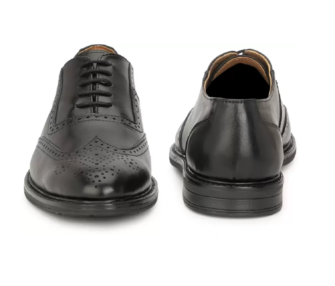Pure Leather Look Brogues Shoes For Men(Color-Black)(UK Size-6)