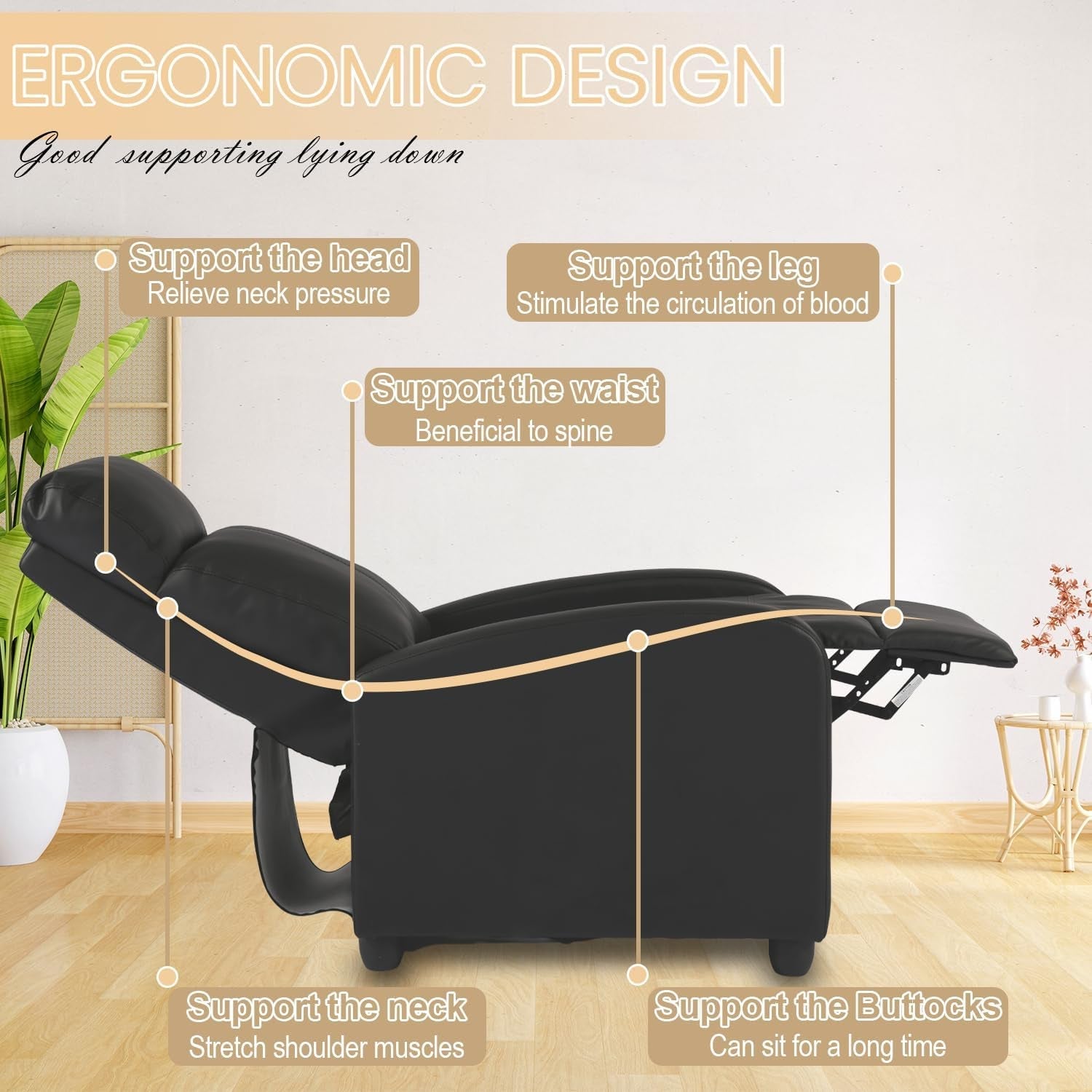 - High-Quality Materials: Crafted from premium PU leather for skin-friendly comfort, high-density foam for breathability, and a solid hardwood frame for durability, this recliner is built to last.