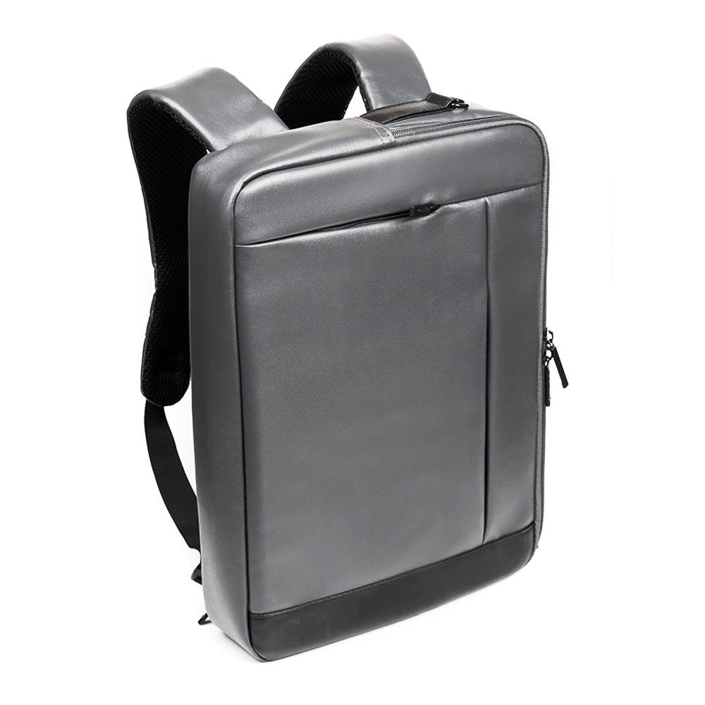 A sleek and stylish slim laptop backpack made from premium leather, ideal for carrying your laptop and other essentials in a compact, minimalist design. Its grey leather gives it a sophisticated, modern look, making it suitable for both business and casual settings.