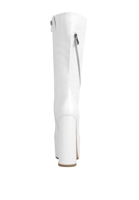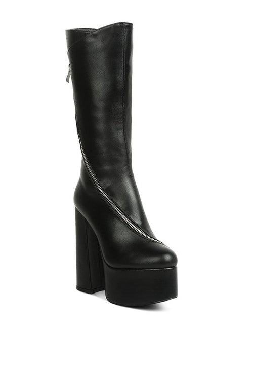 Tzar Faux Leather High Heeled Platfrom Calf Boots