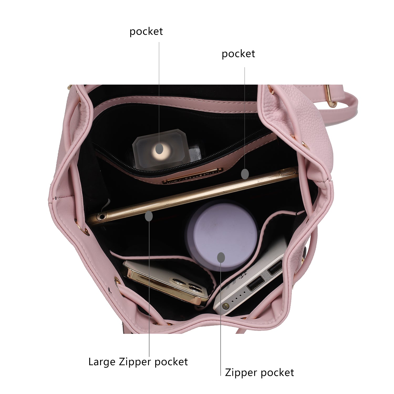 This is the sophisticated Backpack you have been looking for. Our Xandria Backpack is softly structured in vegan pebbled leather and designed with gold-tone hardware. This style holds your essentials while maintaining its classic shape. With a magnetic snap-flap and drawstring closure, open it to reveal a fully lined interior with two slip pockets and a wall zippered pocket. The exterior features two front zippered pockets and a back vertical zippered pocket, perfect to keep all your small items easy to reach. This style has a flat base and feet for stability. The straps adjust to your perfect fit. The Xandria Backpack easily fits all your things and is versatile enough to carry to the office or on weekends.